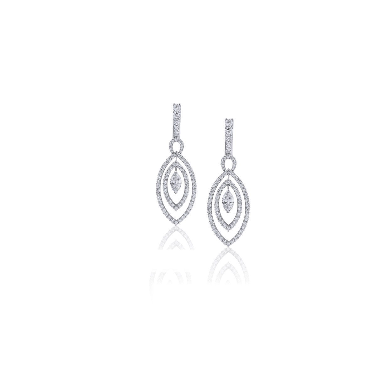 Orecchini in oro bianco diamanti navette diamanti rotondi